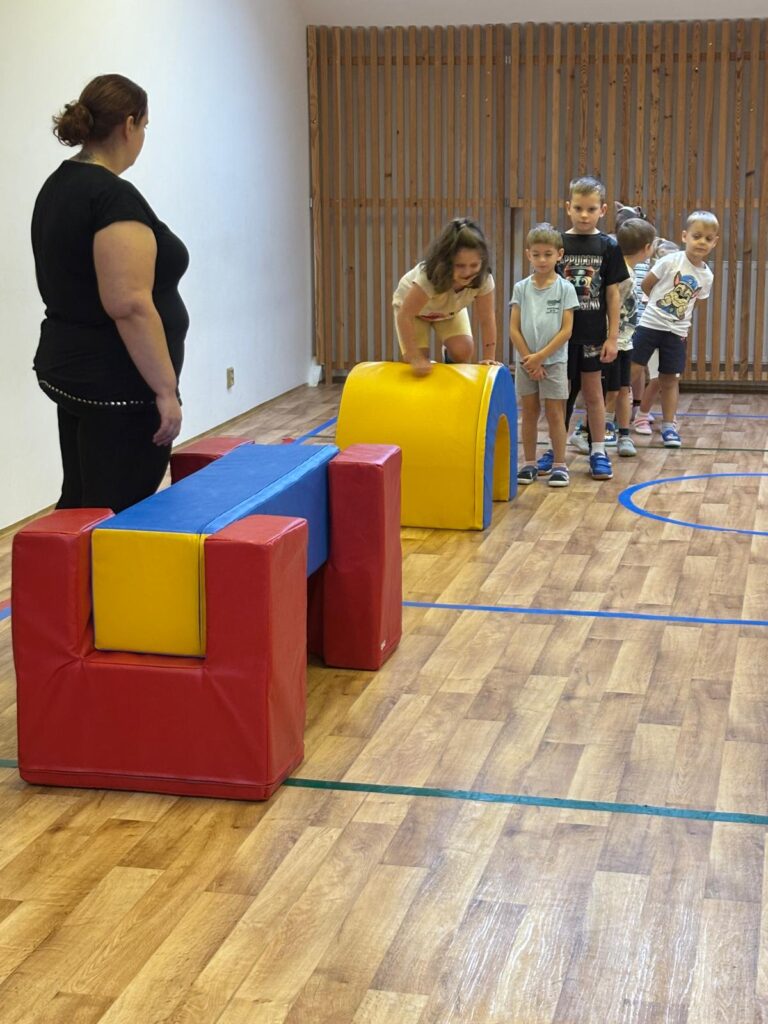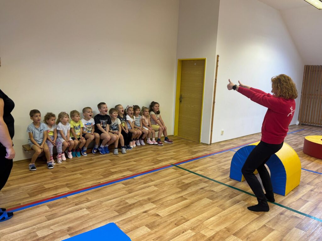 Během předávání gymnastické sady děti podpořila naše odborná lektorka, která zároveň poskytla paní učitelkám tipy a inspiraci pro dlouhodobé využití pomůcek v běžné činnosti školky.