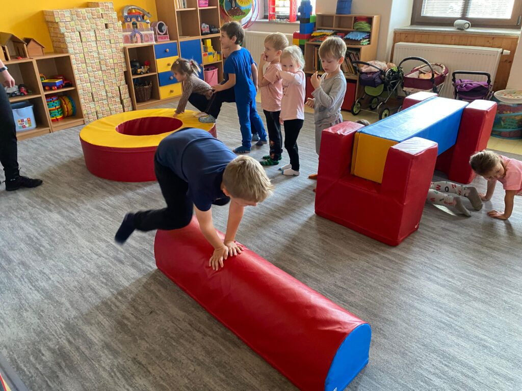Děti se do pomůcek okamžitě s chutí pustily a s radostí objevovaly různé balanční a překážkové aktivity. Nové vybavení je motivovalo k pohybu a zároveň jim poskytlo prostor zkoušet vlastní dovednosti v bezpečném a zábavném prostředí.