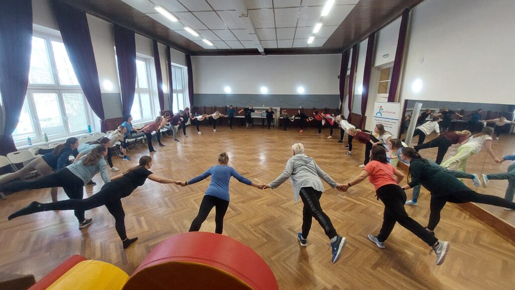 Dopoledne patřilo teorii. Paní učitelky jsme provedli tématy pohybové gramotnosti, doporučeními České školní inspekce, principy cvičení s dětmi i tipy, jak děti přirozeně motivovat k pohybu. Nechyběla ani metodika a inspirativní videa.