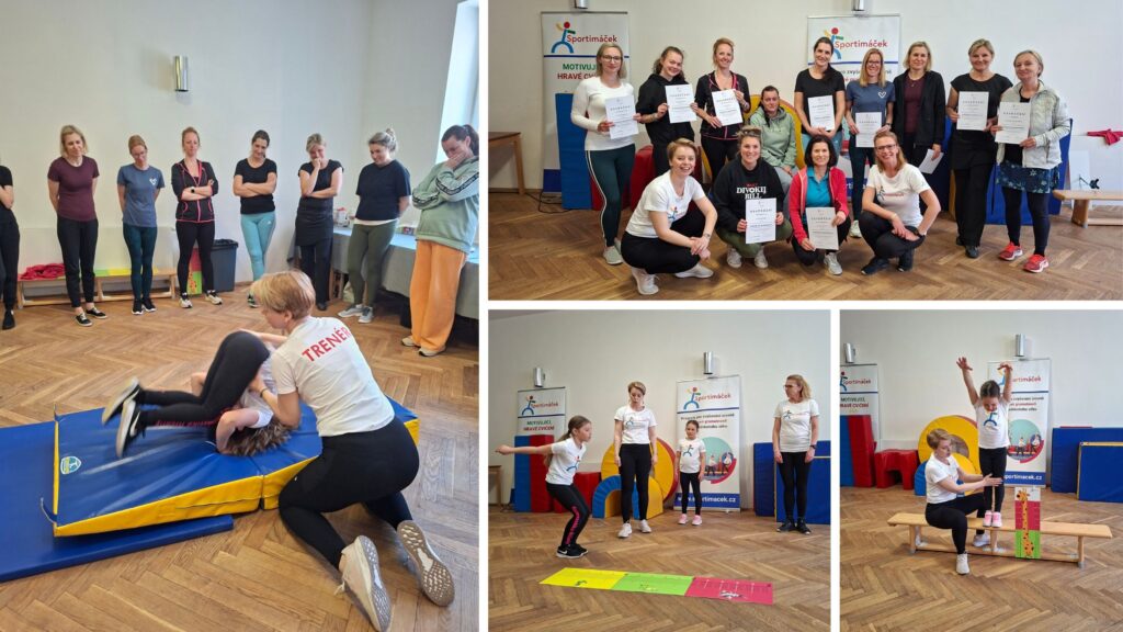 V praktické části jsme se pustili rovnou do akce. Paní učitelky si vyzkoušely variabilitu cvičební sady Sportimáčku, objevovaly nové způsoby práce s pomůckami a aktivně se zapojily do všech aktivit. Jejich energie, otevřenost a chuť zkoušet nové věci byly skutečně inspirující.